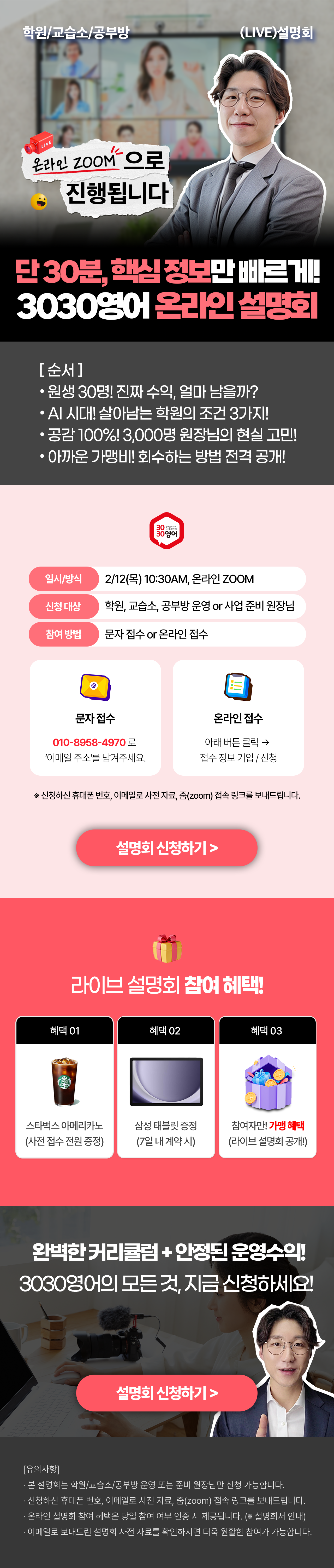 [온라인 설명회] 2/12(목) 10:30 (LIVE), 사전 예약 '스타벅스 커피' 전원 증정 (+ 신학기 오픈 이벤트!)